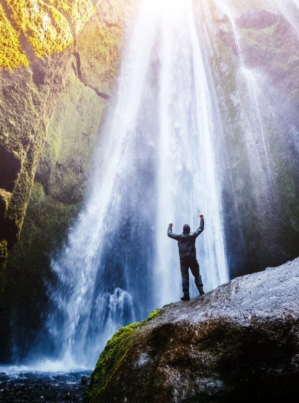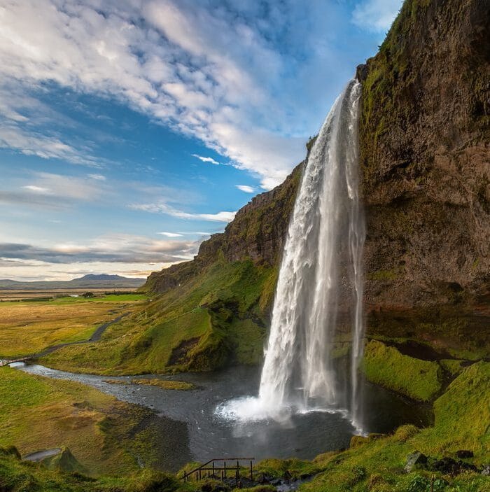 Discover  Seljalandsfoss with unique trail which leads behind the cascading water where you can see the world through a sheet of falling water. This is an incredible opportunity to get an intimate and different view of nature.